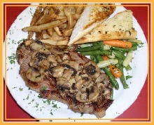 All entreés include your choice of our soup of the day or garden salad, AND french fries or baked potato. Pasta and perogie dishes include soup or salad only.
